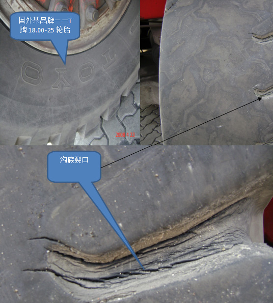 8、國外品牌輪胎使用情況,同樣出現(xiàn)花紋溝底裂口——大連勝獅國際