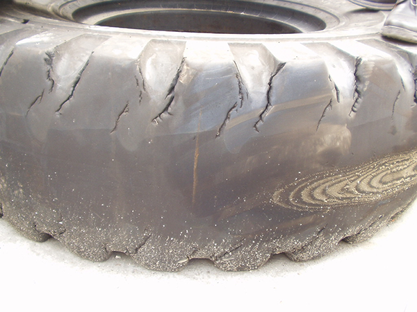 7、國外品牌輪胎使用情況,出現(xiàn)花紋溝底裂口——廈門某堆場(普通聯(lián)鎖塊路面)